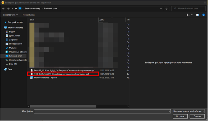 В открывшемся проводнике, выбираем файл с нужной обработкой, формат обработок *epf