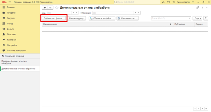 обработки» –«Дополнительные отчеты и обработки».
